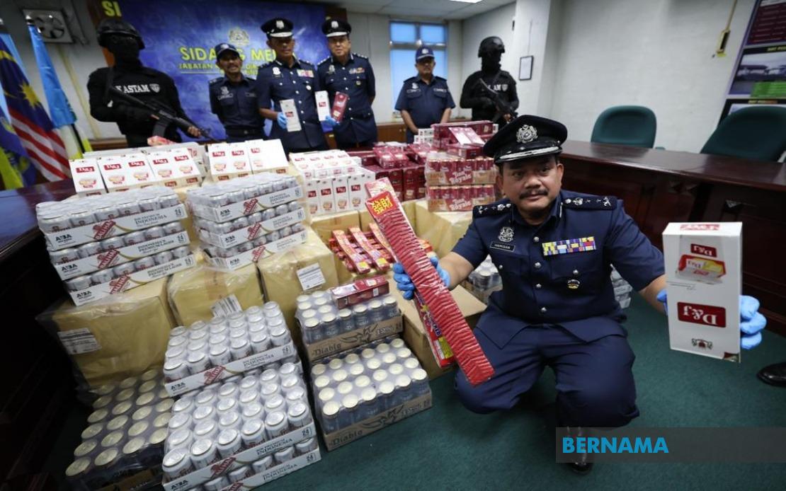 “Pemeriksaan terperinci di dalam gudang menemui ratusan kotak minuman keras disusun rapi, dipercayai diseludup tanpa pembayaran cukai. Jumlah keseluruhan rampasan adalah 104,544 liter,” katanya.